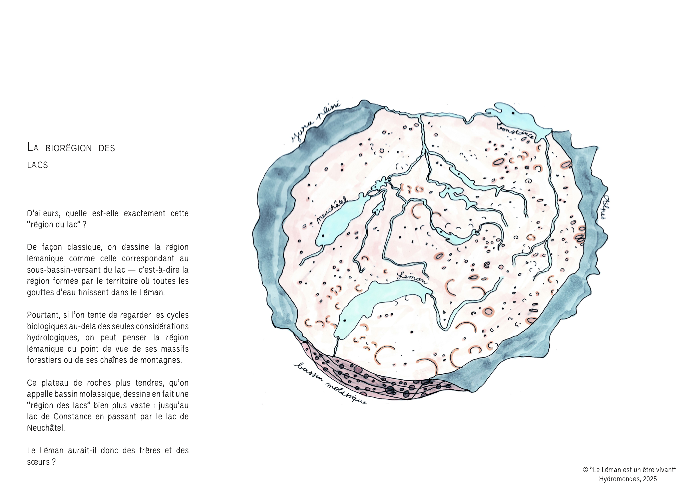 Comment le montrer avec justesse ? Lui qui est pris dans tant de grands cycles : entre Suisse et France, entre Alpes et Jura, entre glaciers du Rhône et Méditerranée, accompagné d’une myriade d’affluents – sans oublier le cortège d’être vivants, humains et autres qu’humains, qui ont vécu et vivent encore à ses côtés.
